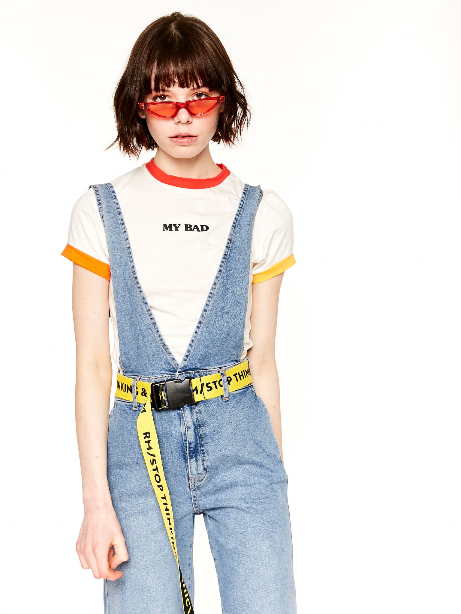 Cinturon Amarillo Y Negro, que dice "STOP THINKING & CHIC" , polifuncional. No tienen talle y mucho menos edad.Read more
