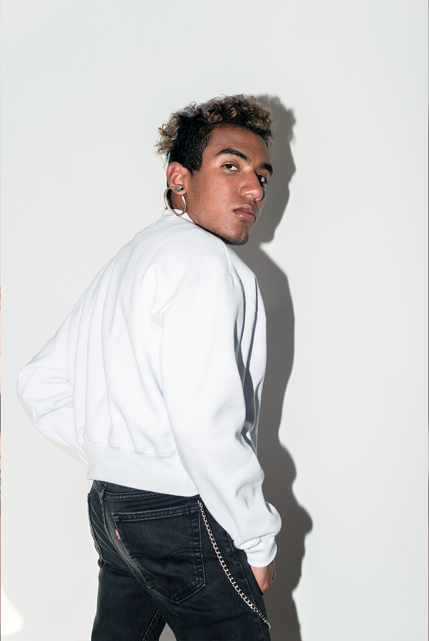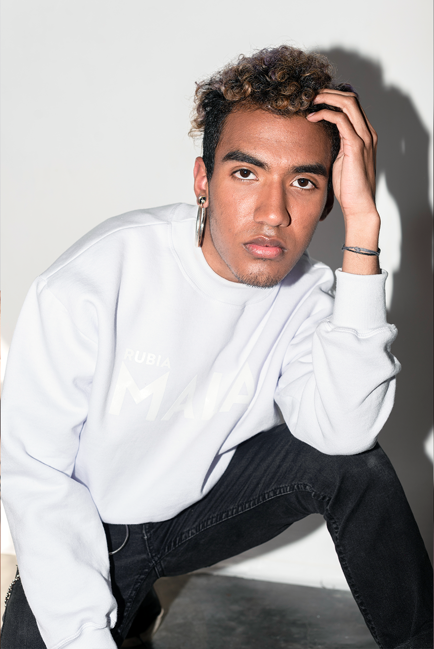 Sudadera en algodón corta a la cintura con frunce e inscripción frontal que dice "rubia MALA".