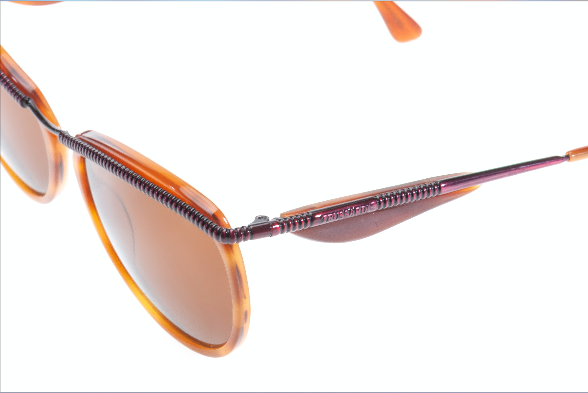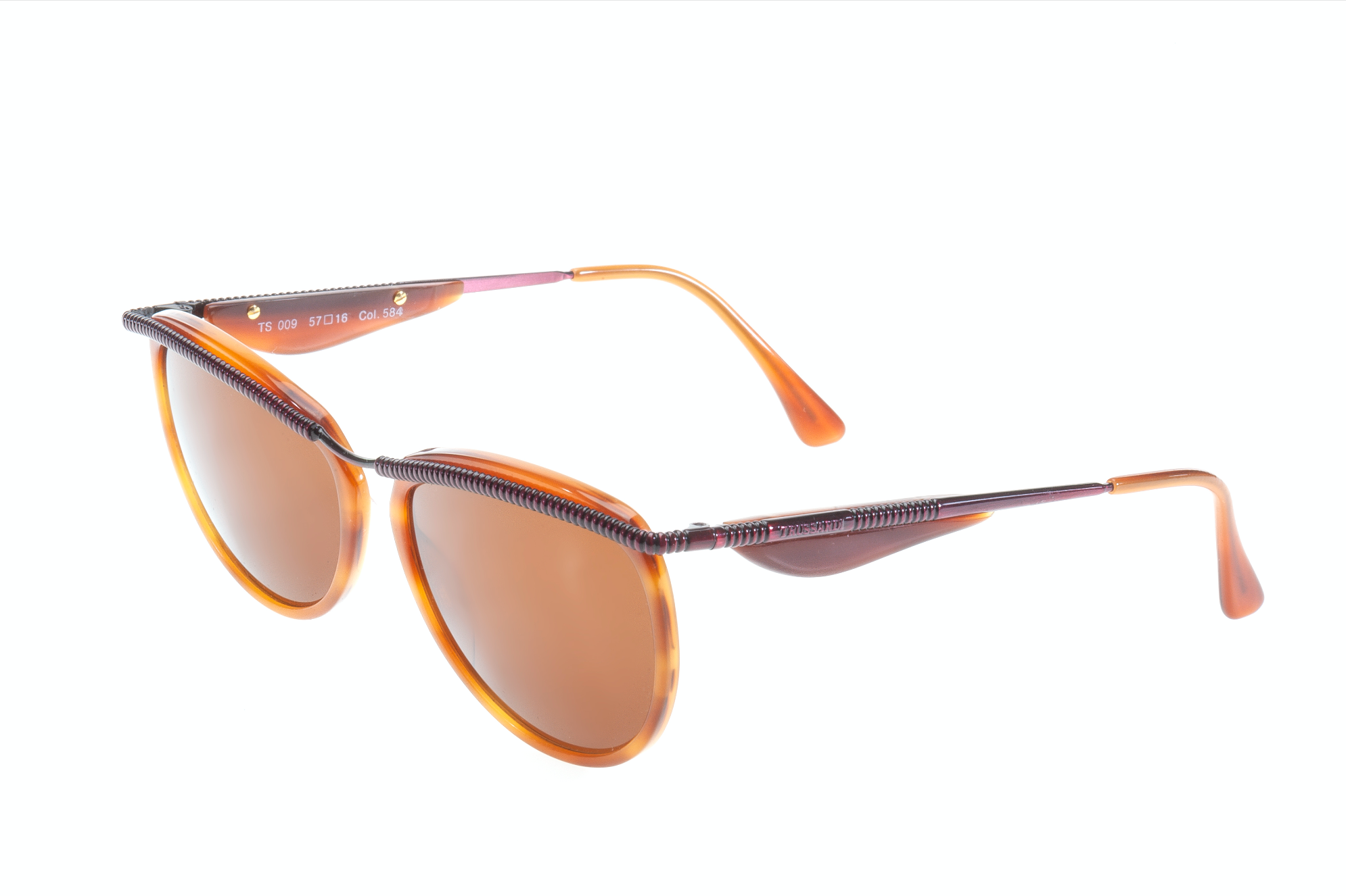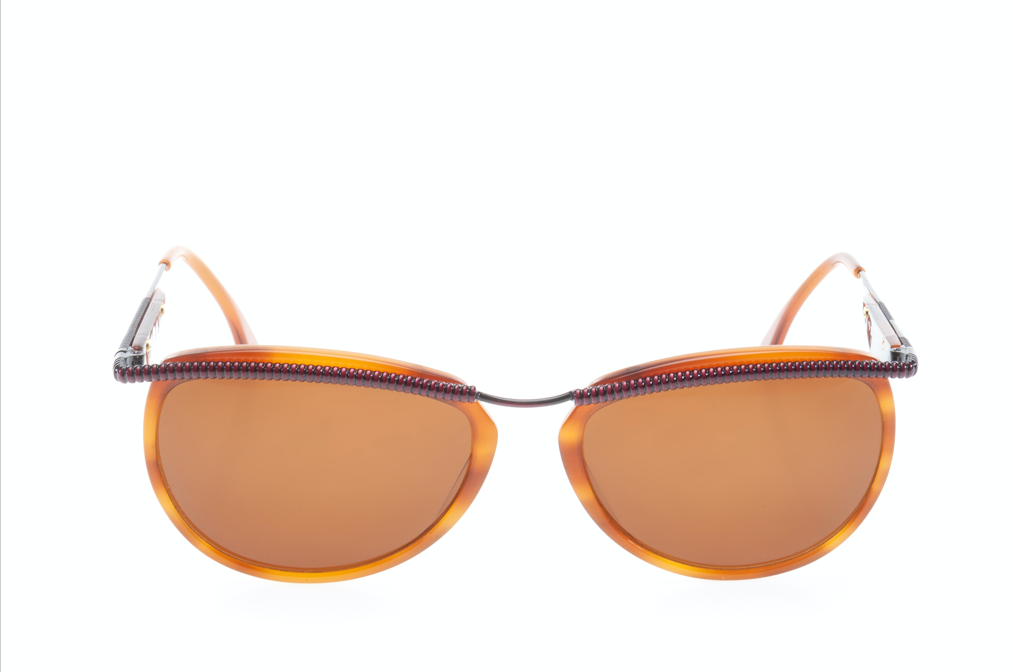 Lentes color ambar en carey con detalle metálico estilo 70´s.
