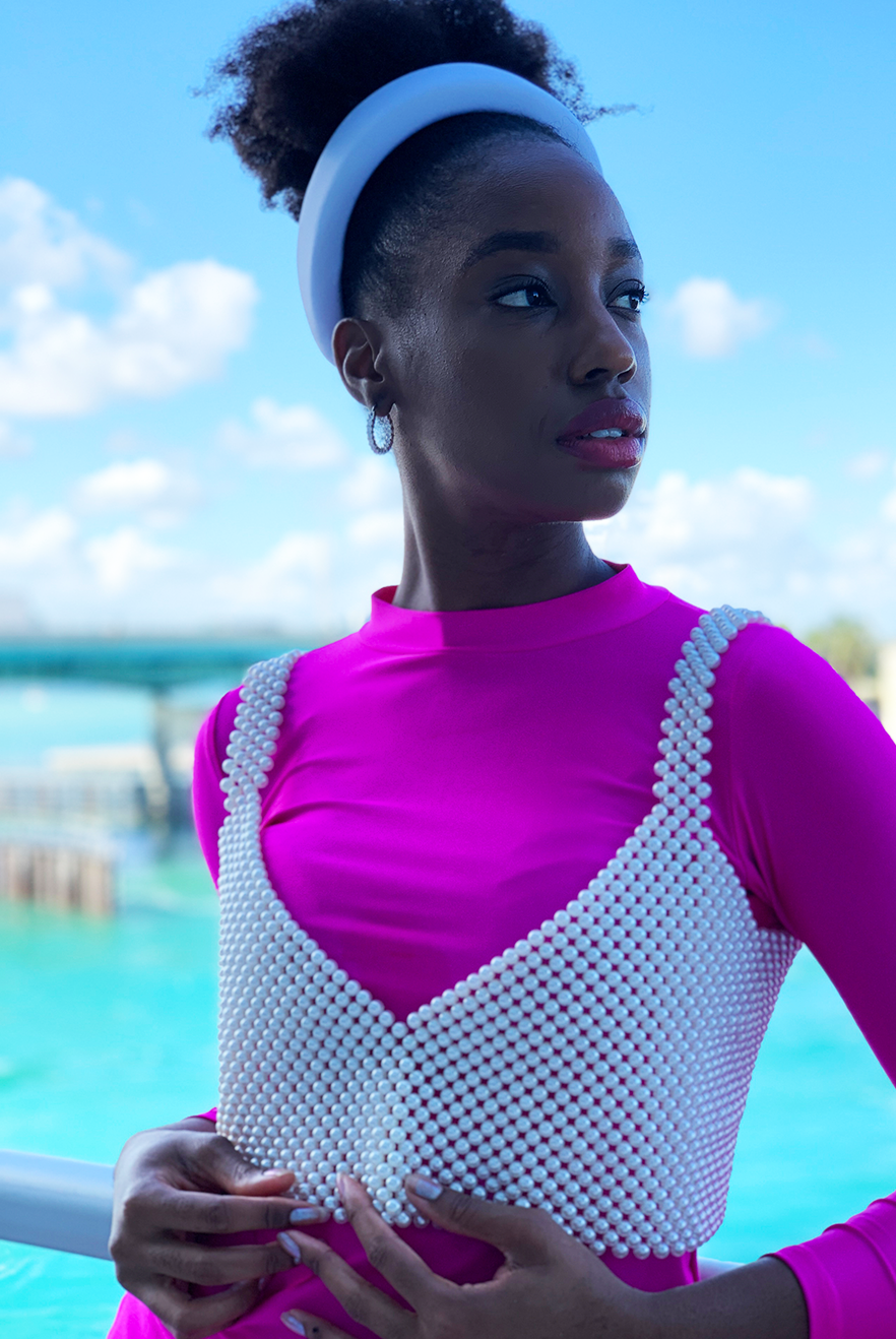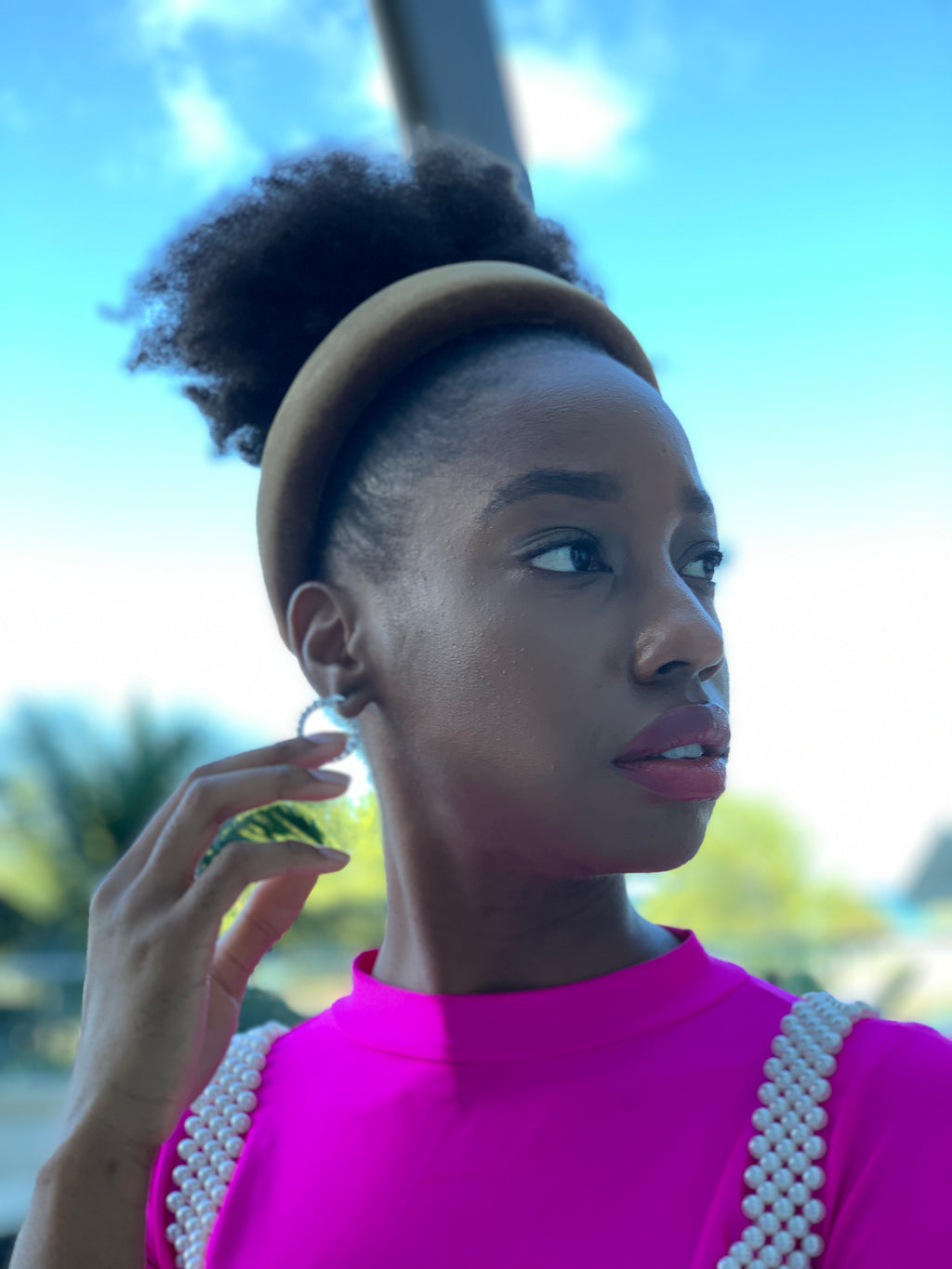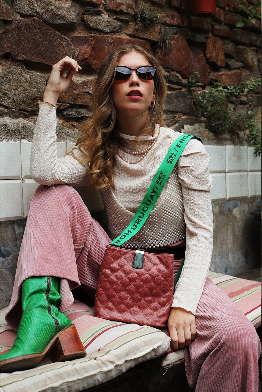CARTERA ROSA CON VERDE CAPITONEADA CON CINTA "FROM URUGUAY"